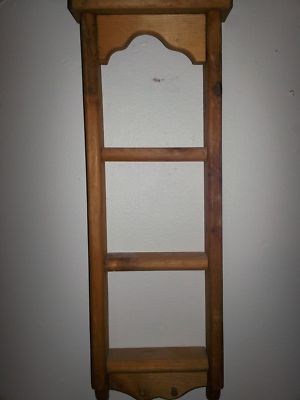 Title (ebay affiliate link): PRETTY VINTAGE NATURAL COLOR WOODEN WALL SHELF WITH 3 SHELVES 2 PEGS