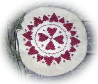 Title (ebay affiliate link): Primitive VALENTINE Cranberry Woolfelt Folk Heart Penny Rug ~ Candle Mat