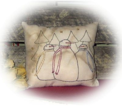 Title (ebay affiliate link): Primitive Winter January Snowman Trio & Pine Trees Stitchery Pillow