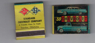 Title (ebay affiliate link): 2 1959 Chevrolet matchbooks Standard Chevrolet Sapulpa Oklahoma