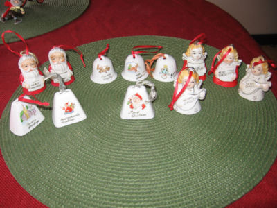 Title (ebay affiliate link): VINTAGE CHRISTMAS ORNAMENTS BELLS PRE WAR JAPAN HAND PAINTED SANTA- ANGEL- BELL
