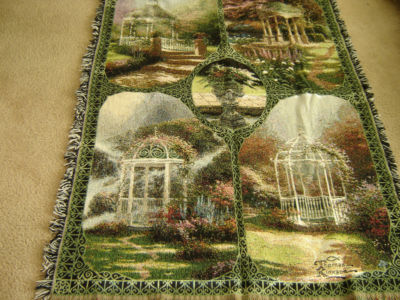 Title (ebay affiliate link): THOMAS KINKADE Beautiful "PAINTER OF LIGHT" Gazebos Tapestry Throw