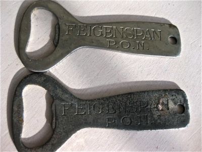 Title (ebay affiliate link): 2 Vintage Steel Beer Bottle Opener Feigenspan P.O.N.