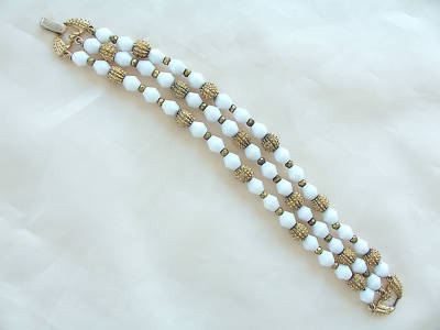 VINTAGE 3 ST MILK GLASS BRACELET CROWN TRIFARI 7-1/2"