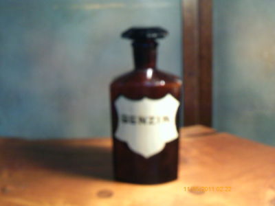 Title (ebay affiliate link): Original 19th C. Apothecary JAR with LID BENZIN Amber/Brown