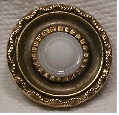 7/8" YELLOW GILT LONG COAT BUTTON w/MILK GLASS CENTER