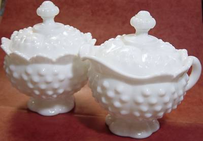 FENTON MILK GLASS HOBNAIL SUGAR CREAMER WITH LIDS MINT!