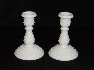 VINTAGE Fenton Milk-glass Footed Candlesticks - Hobnail