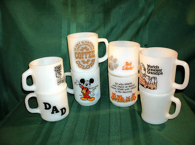 LOT 8 MILK GLASS MUG CUP FIRE KING A H GLASBAKE FEDERAL
