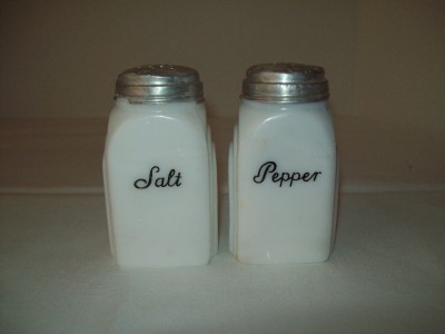 MCKEE SALT & PEPPER SHAKERS - MILK GLASS ROMAN ARCHES