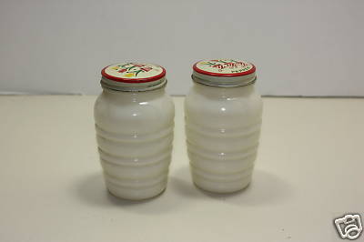 VINTAGE TWO MILK GLASS PEPPER SHAKERS TULIP TOP NOS