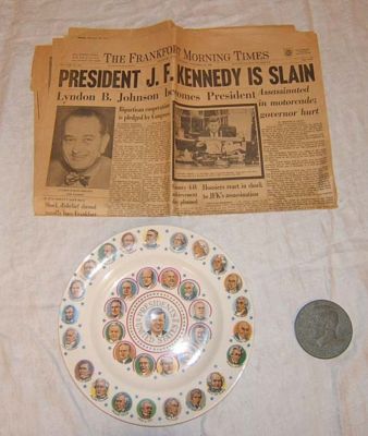 3 Old John F. Kennedy JFK death The Frankfort Times 1964 large half dollar plate