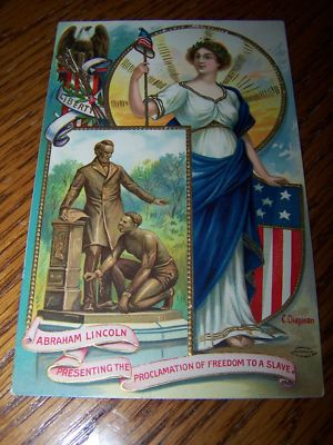 Title (ebay affiliate link): Abraham Lincoln Postcard - Lincoln Presenting the proclamation of Emanicpation!