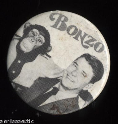 Title (ebay affiliate link): RARE 1951 pinback ronald Reagan Pin Bedtime for Gonzo Movie film Chimpanzee