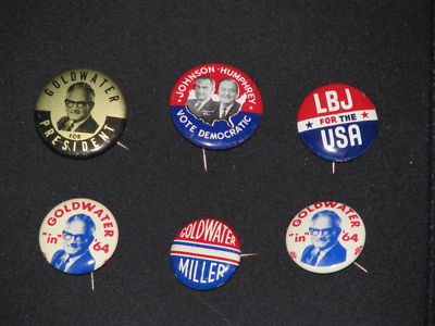 Title (ebay affiliate link): Six Presidential Campaign Buttons from 1964