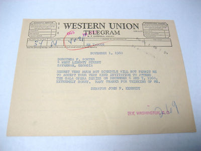 Title (ebay affiliate link): 1960 Original Telegram Sent by John F Kennedy JFK Savannah, GA #2