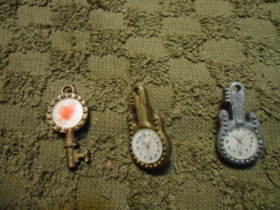 VINTAGE* VARI-VIEW/ FLICKER PENNY KING CHARMS/ CLIP ONS GUITAR CLOCKS/ KEY