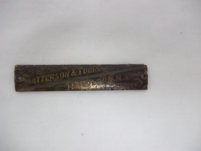 Old MATTERSON & TOOKE carriage buggy tag HAMILTON NY NEW YORK maker ORIGINAL