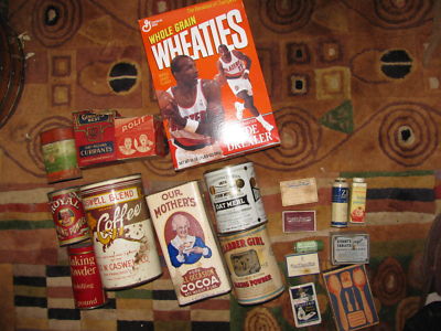Title (ebay affiliate link): Tins Caswell Coffee 1919 calender Cocoa Oatmeal baking powder wooden spoons ++