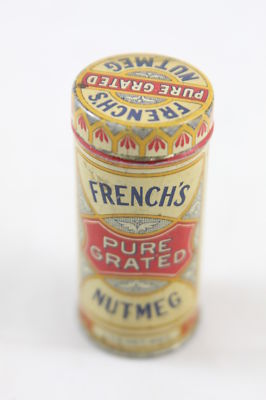 Title (ebay affiliate link): VINTAGE FRENCH'S ADVERTISING PURE GRATED NUTMEG LITHO ENAMEL LABEL SPICE TIN CAN