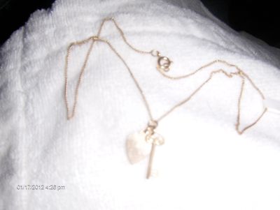 Winard signed heart/key charm gold filled chain necklace 15" length vintage