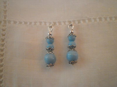 Antique/Vintage~Doll~Earrings~Baby~Blue~Glass~Beads~Jumeau~Bru~Bisque
