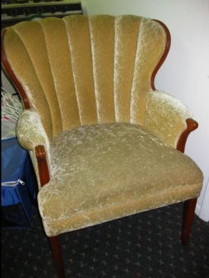 Title (ebay affiliate link): Mid-Century Vintage Shell Back Arm Chair, Yellow Crushed Velvet