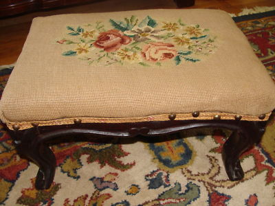 Title (ebay affiliate link): Antique Vintage Wooden Footstool Needlepoint Seat Excellent