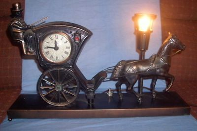 Title (ebay affiliate link): United Clock Co Coachman Carriage & Horse Electric Clock, Light & Animated Whip