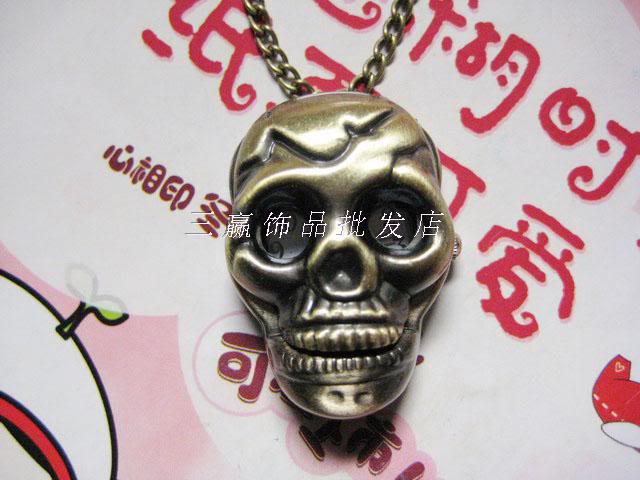 Title (ebay affiliate link): Copper POCKET WATCH CLOCK skull head PENDANT LONG NECKLACE