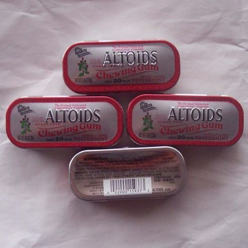 Title (ebay affiliate link): 4 Altoids EMPTY Tins Tin Chewing Gum Discontinued Collectible Containers