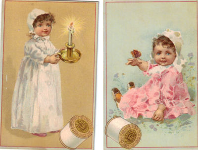 Title (ebay affiliate link): J&P Coats Spool Thread Baby Girl Candle & Butterfly 2 Trade Cards c1880