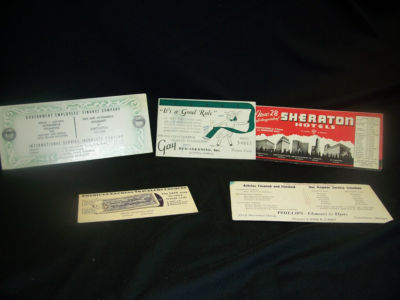 Vintage Set of Six Ink Blotters Including Two from Sheraton Hotels