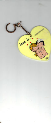 Title (ebay affiliate link): VINTAGE LOVE IS COMIC STRIP CHARACTERS KEYCHAIN HEART TOGETHERNESS BY KIM