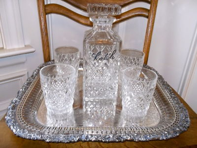 Title (ebay affiliate link): Vintage crystal Liquor decanter set with silverplate tray (GORGEOUS!)