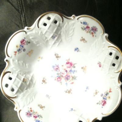 Title (ebay affiliate link): Vintage German Reichenback Floral Porcelain Oval Bowl With Legs & Gold Trim