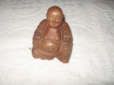 VINTAGE WOODEN BUDHA 5 1/2" X 4" X 3" FIGURINE