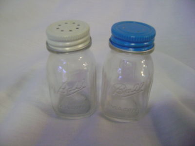 Title (ebay affiliate link): Ball Mason Jar Brand Glass Miniature Salt and Pepper Shakers Made in U.S.A.