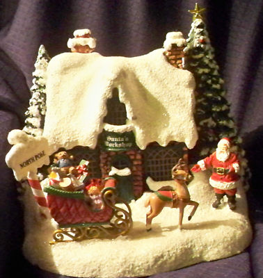 Title (ebay affiliate link): Teleflora's Thomas Kinkade 2010 Lighted Santa's Workshop Collectable Village