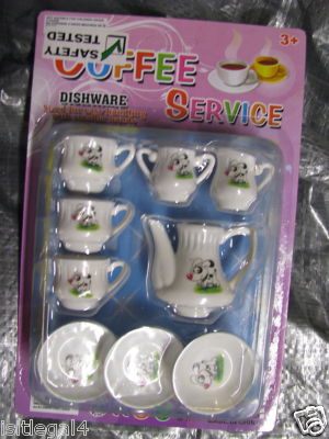 Title (ebay affiliate link): childs Miniture white plastic with dog puppy print toy Coffee tea service set