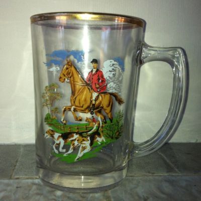 Title (ebay affiliate link): Equestrian Illustration Glass Beer Jug One Pint 1pt Collectable