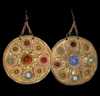 Title (ebay affiliate link): 1920's ART DECO EGYPTIAN REVIVAL ETRUSCAN GYPSY ART GLASS & BRASS EARRINGS!