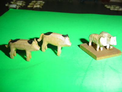 Vtg. German Erzgebirge Penny Toys Houses ? Animals 4 Pigs