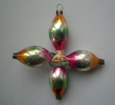 Title (ebay affiliate link): ANTIQUE END OF THE DAY BLOWN GLASS CROSS & PAPER ANGEL CHRISTMAS ORNAMENT