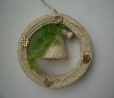 Title (ebay affiliate link): ANTIQUE GERMAN SPUN COTTON BELL IN RING CHRISTMAS ORNAMENT