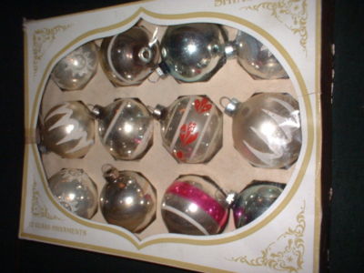 VINTAGE SHINY BRITE CHRISTMAS ORNAMENTS SILVER