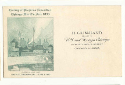 Title (ebay affiliate link): Expo Chicago Fair 1933 Grimsland Stamp Co Opening Day