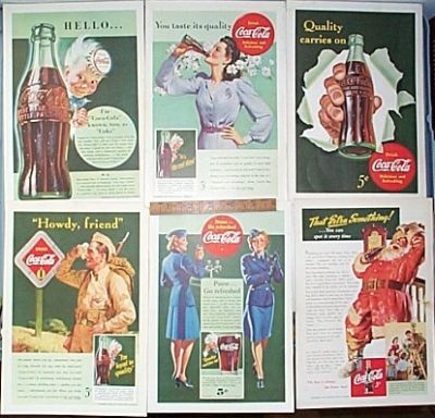 Title (ebay affiliate link): 12 Coke Coca Cola Ads From 1942 & 1943 Original Ads Santa Claus Too 7" by 10"