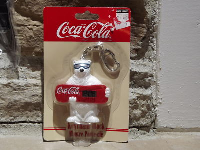 Title (ebay affiliate link): 1999 Coca Cola Snow Board Bear Key Chain Clock MOC
