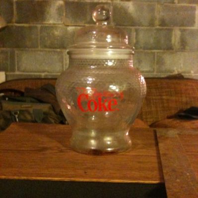 Title (ebay affiliate link): 8 INCH CLEAR GLASS COCA COLA (COKE) CANISTER JAR WITH LID